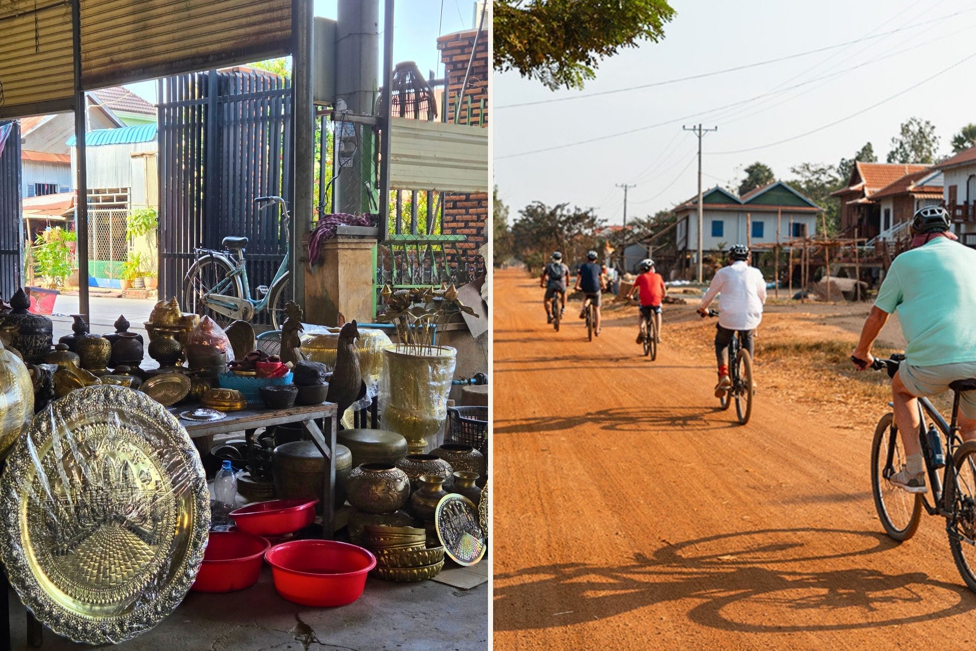 Our first outing was to Koh Chen, a silversmith village just along the Tonlé Sap River. It’s the only place in Cambodia that produces silverware at scale, supplying everything from household items to pieces for the royal family. We were invited in to see artisans at work, handcrafting intricate plates, bowls, cutlery, and ornaments using techniques that haven’t really changed in generations.