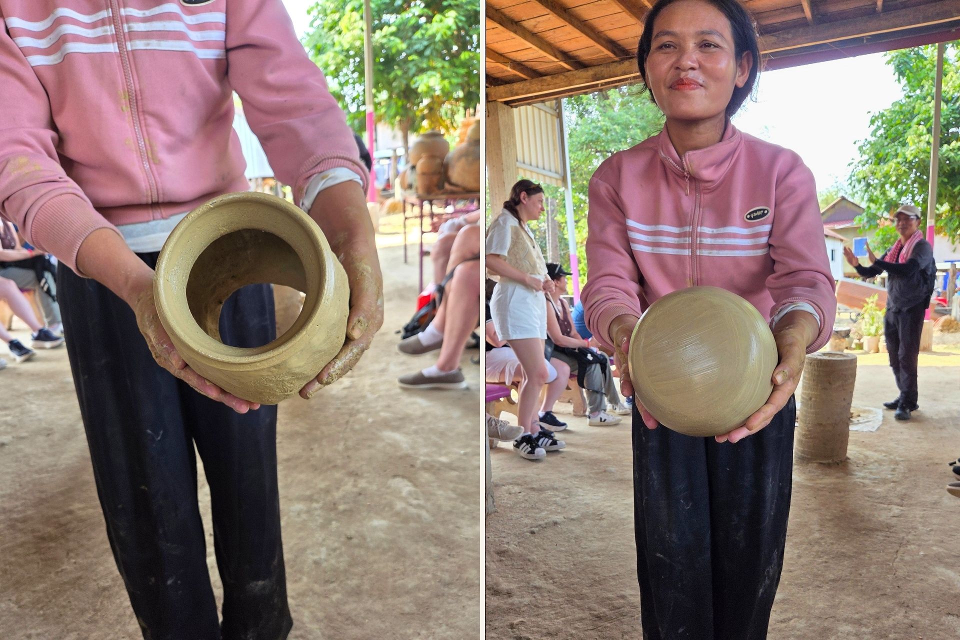We journeyed through the town of Kampong Chhnang and visited a family home where they make clay pots by hand. The artisan, a cheerful woman in her early thirties, demonstrated how to shape clay without a potter’s wheel making it look entirely effortless. I can confirm, having tried, that it is not.