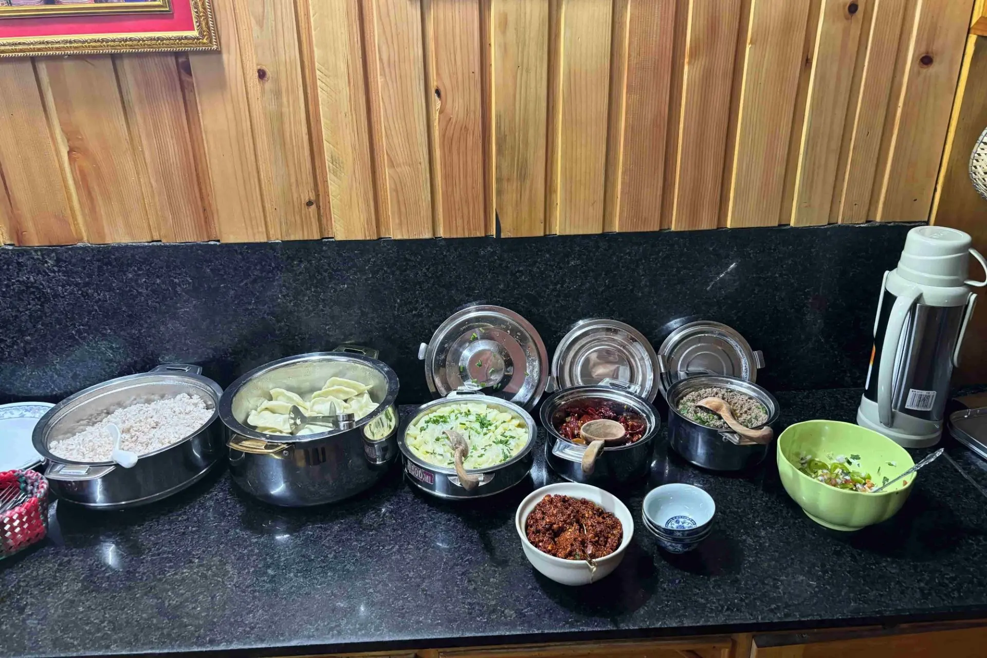 With bowls full of fragrant potato filling, we begin the straightforward-looking job of stuffing it into palm-sized wheat dough sheets and shaping them into dumplings. It looks simple, but requires a certain finesse. We all giggle when my momos end up looking more like half-moon-shaped mezzelune. Clearly practice makes perfect, and I’m sure I’ll be trying to recreate the dish at home as a tasty reminder of an incredible trip.