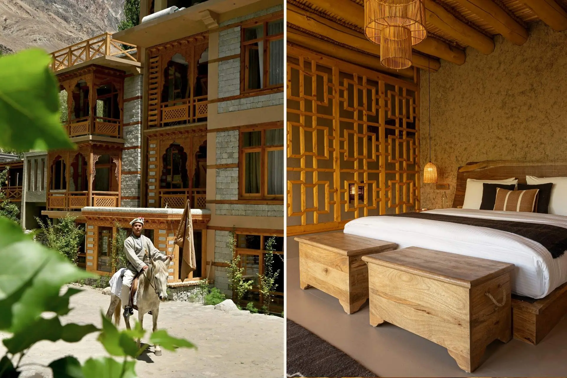 At Virsa in Baltistan, their ‘Sustainabalti’ initiative runs artisan workshops; everything from loom-weaving and copper-smithing to wood and stone carving, making sure the profits go back to the community. Virsa itself is built from locally sourced materials like dressed stone, riverbed mud, timber and hand-carved wood, all crafted by local artisans.