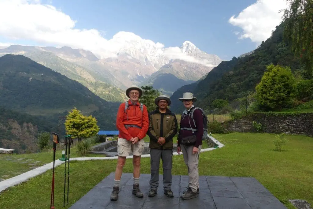 Visiting Majgaon was so worthwhile and the museum was unmissable. We set off on our trek with our porter, and Anup who were very good at anticipating water stops and rests for us. We were fortunate to have clear views of the Annapurna Range from all the lodges and homestays. Magnificant. The bamboo swing was a wonderful experience for us all. Very privileged to meet honey hunters – it is becoming rare – fascinating to see their the rope ladders, equipment, honeycomb and grubs fried and eaten as a delicacy.