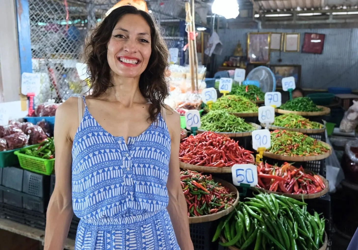 Dominique in a food market in Bangkok