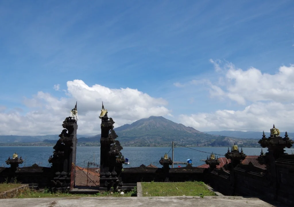 Opposite the burial site and Trunyan village (which you typically also visit on these tours) is Mt Batur, one of Bali’s active volcanoes. You can see the latest lava flow from the road leading to the boat station and spot the current active vents steaming on the ridge halfway up towards the summit.