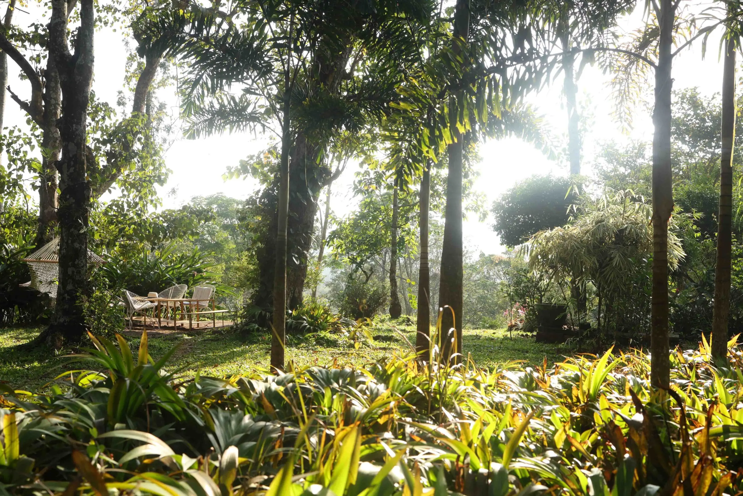 The Pallam palace is the house that sits in the heart of the plantation. You’ll find seven bedrooms, all with direct garden access and lovely views. The style is in keeping with the 18th Century wooden structure. Vibrant soft furnishings give the rooms a homely feel. Expect a comfortable but not overly luxurious stay.