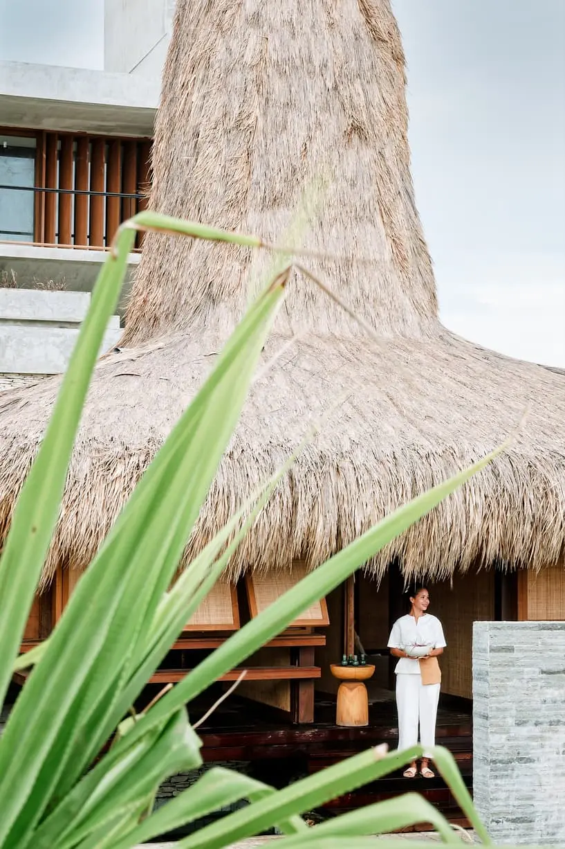 While it delivers a high level of comfort, it still stays closely tied to the island’s landscape and culture. The remote position is hard to beat: a hillside above a wide, undeveloped white-sand beach that still feels like a discovery.