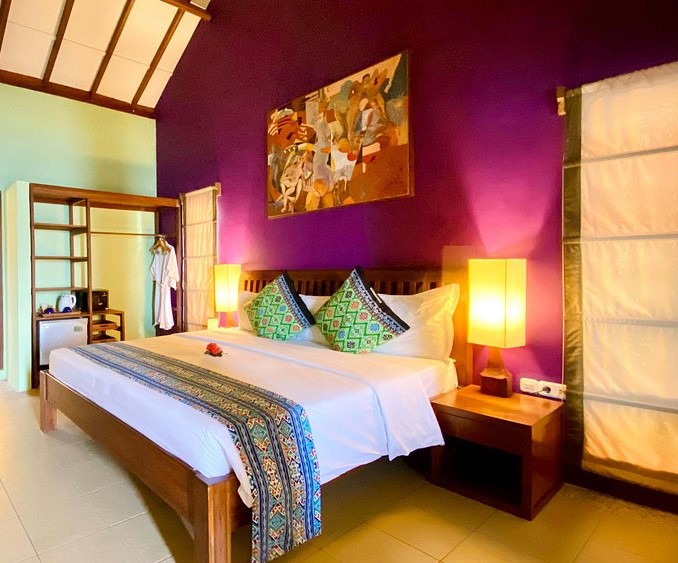 With a laid back, friendly service and lovely views of Siladen and Bunaken Islands, the property is well-run, cosy and comfortable. Eco-friendly building materials have been used to blend with the surrounding villages and coconut grove.