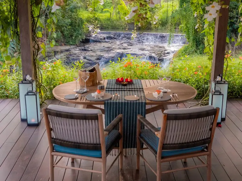 The delicious meals at Ambu Restaurant are a highlight: best looking onto a waterfall and nowhere else to be.