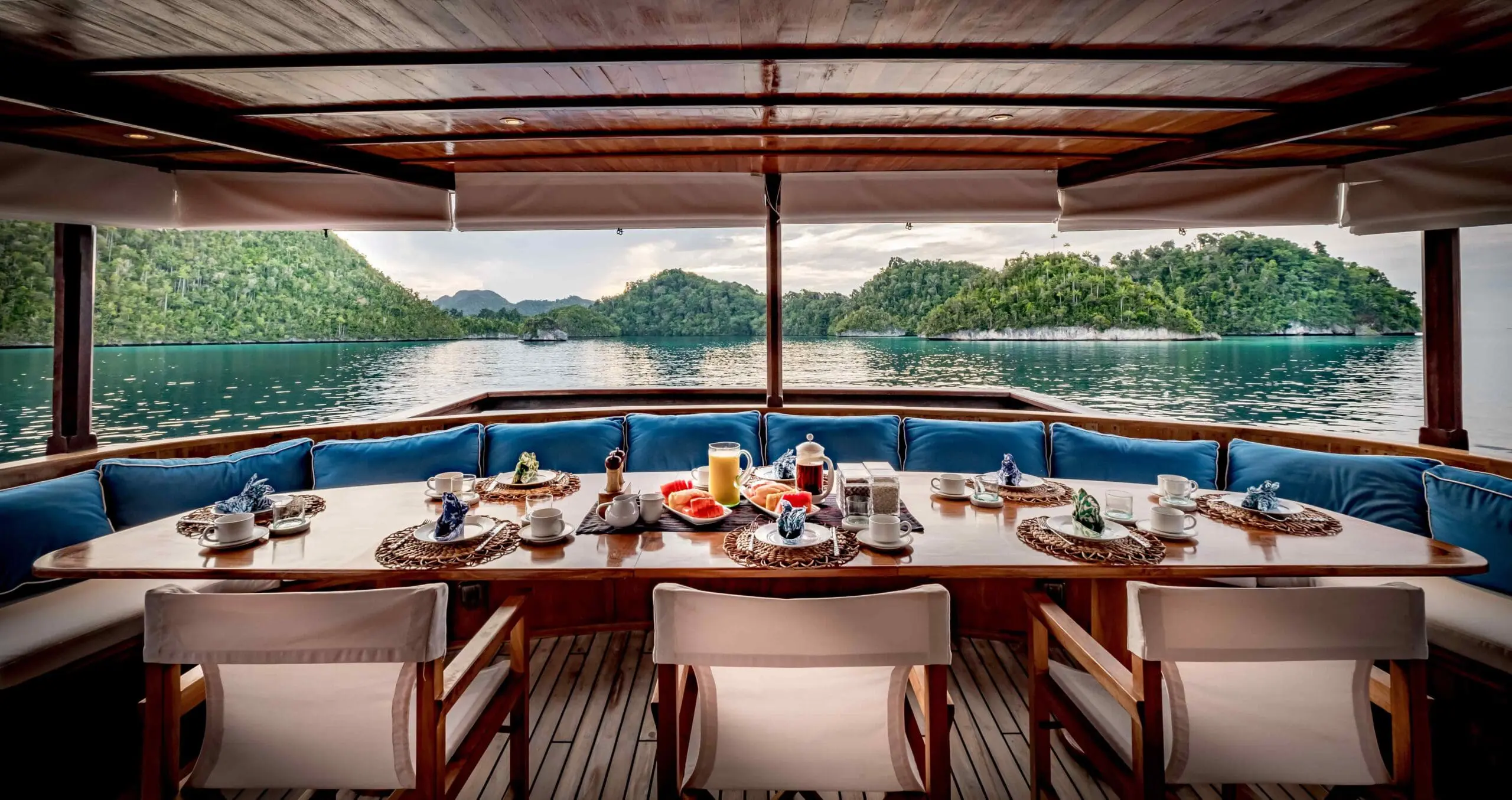 Guests can either join a scheduled sailing (typically 4 nights in Komodo, 5–7 in Raja Ampat) or charter a yacht privately.