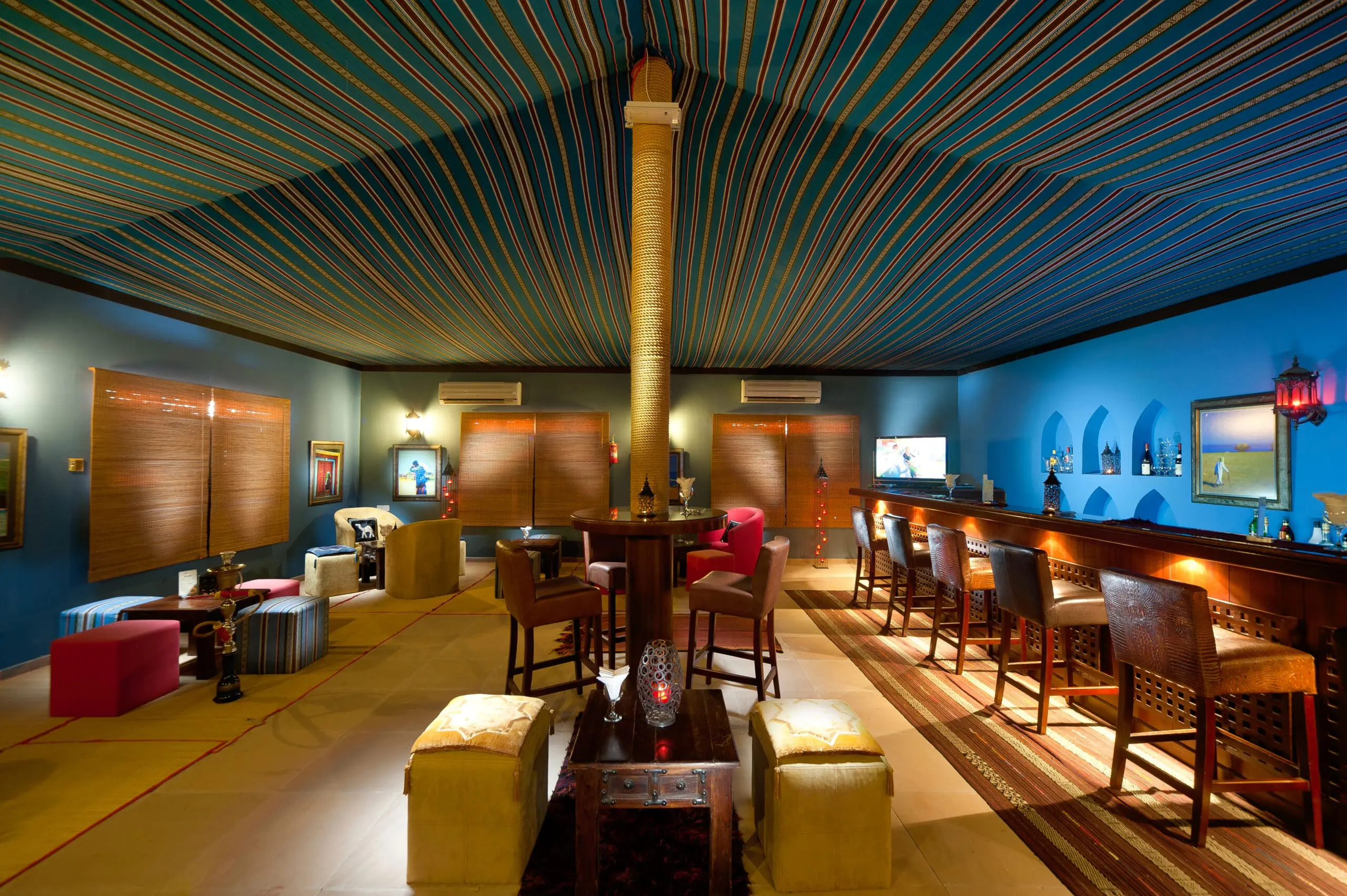 39 tents are scattered around the red sand with canvas roofs and pops of colourful furnishings inside. You’ll have air conditioning, en-suite bathrooms, comfortable beds, a living area (and surprisingly strong wifi). Two-bedroom tents are also available, which are great for families.