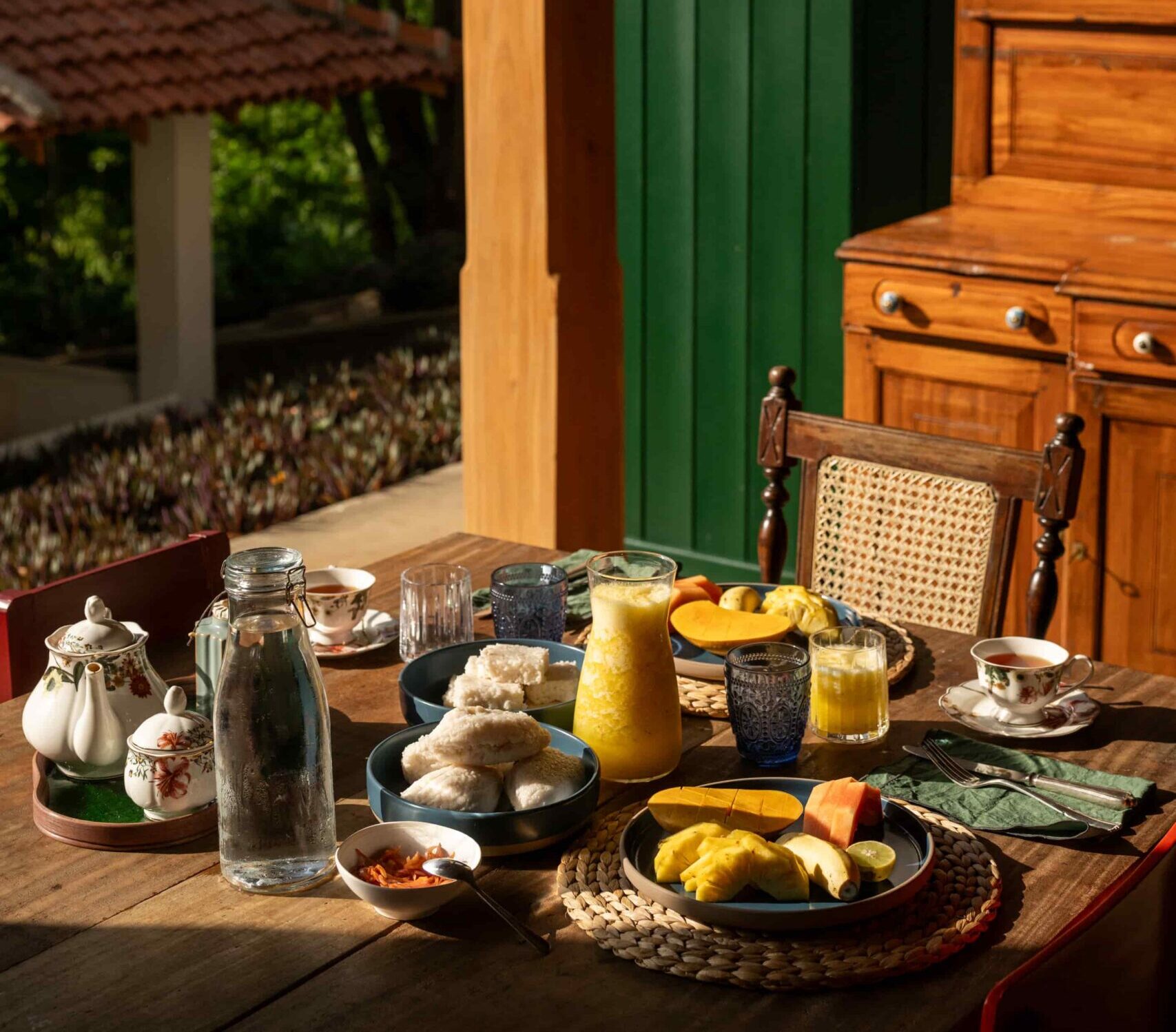 Dine on traditional Sri Lankan fare, everything from fresh tropical fruits and Egg Hoppers to Ceylon Tea, including a Peacock Hill Blend.