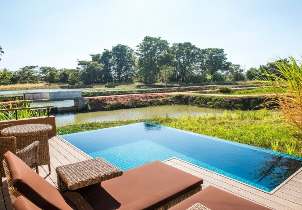 Blending modern luxury with a serene setting, Water Garden Sigiriya stands out against the wild, open landscape around it.