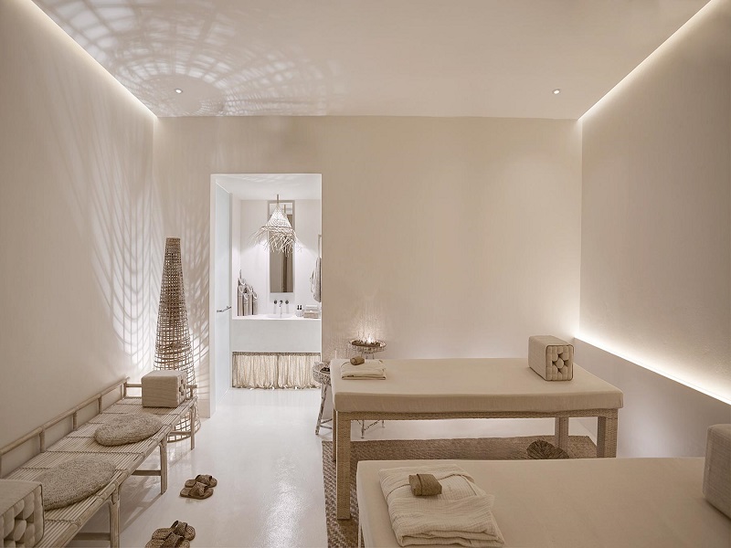 The 33 spacious suite rooms have a real wow factor and are set across three levels. White-washed wood and crisp linen, jute rugs and baskets, and traditional indigo-dyed fabrics give a luxurious feel, with beds you’ll sink into, freestanding bathtubs and double vanities.