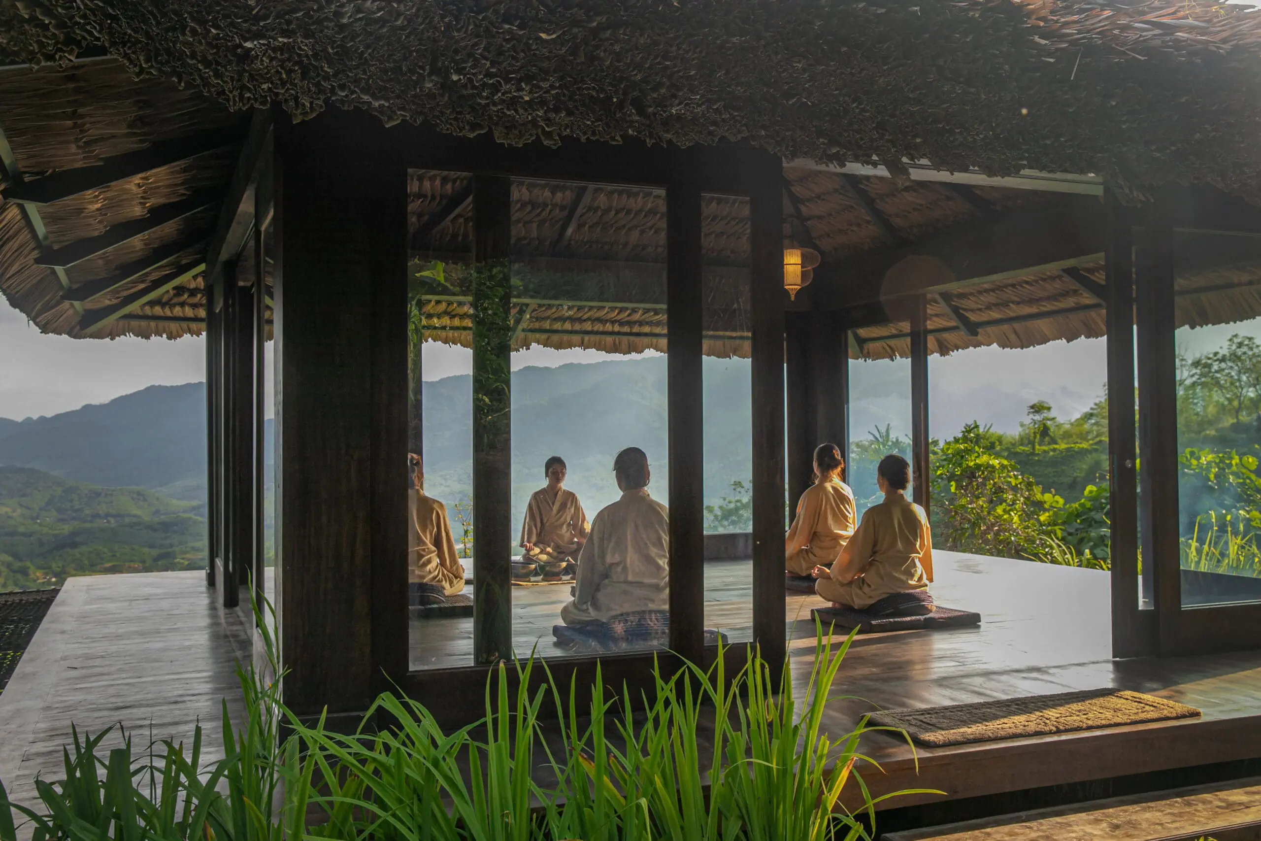 Set across a whopping 15 hectares, the retreat looks out over a misty mountain valley covered in dense forest, rice fields, and hidden waterfalls. The area is home to three ethnic communities, whose traditions inspired the design and spirit of the resort.