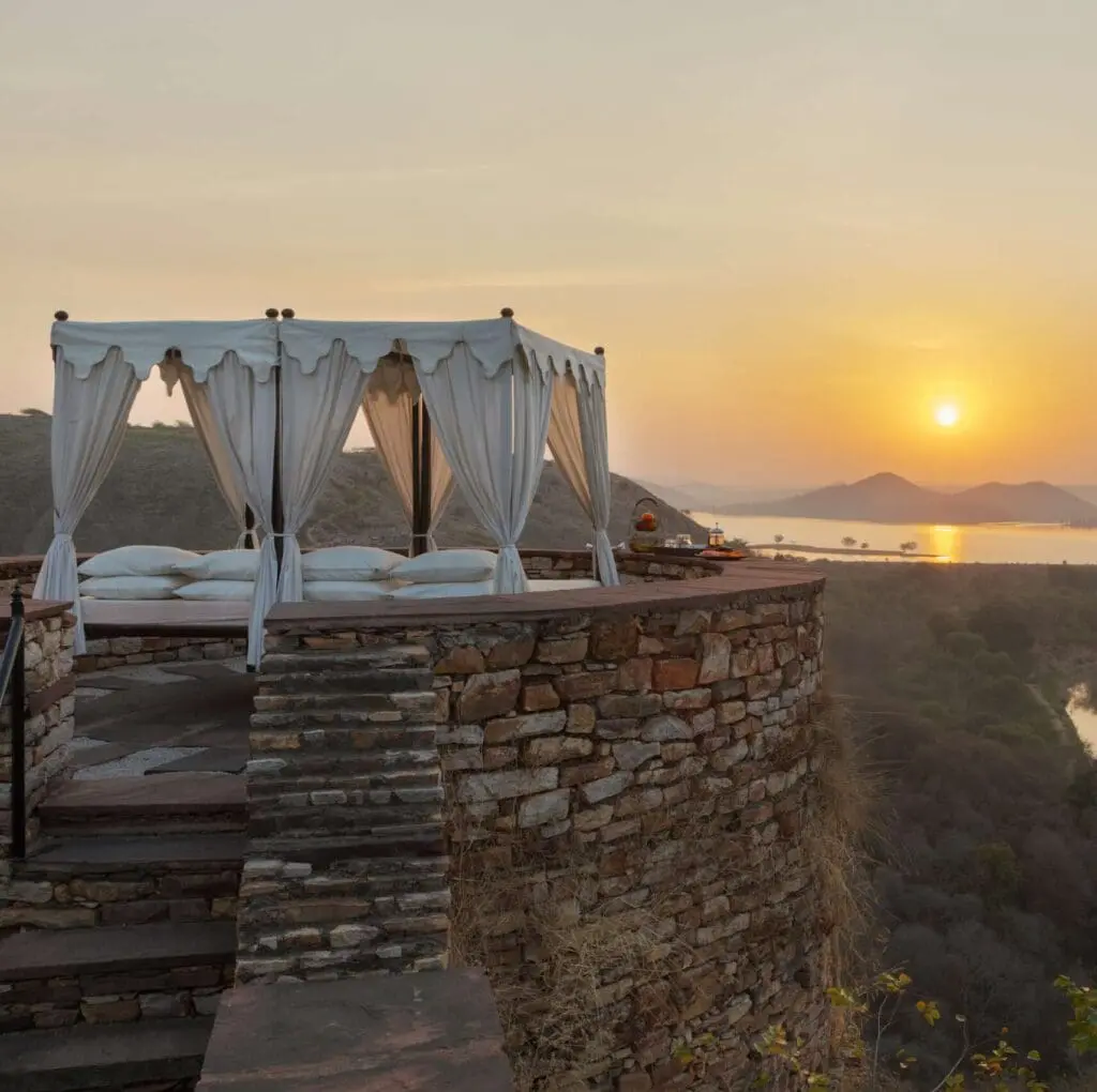 Raas DeviGarh is a striking hilltop fort palace just outside Udaipur, offering an extraordinary fusion of ancient architecture and modern design. This 18th-century stronghold has been transformed into a luxurious retreat with minimalist interiors, panoramic Aravali views and award-winning service. Romantic, restful and refreshingly different, it’s a unique place to unwind.