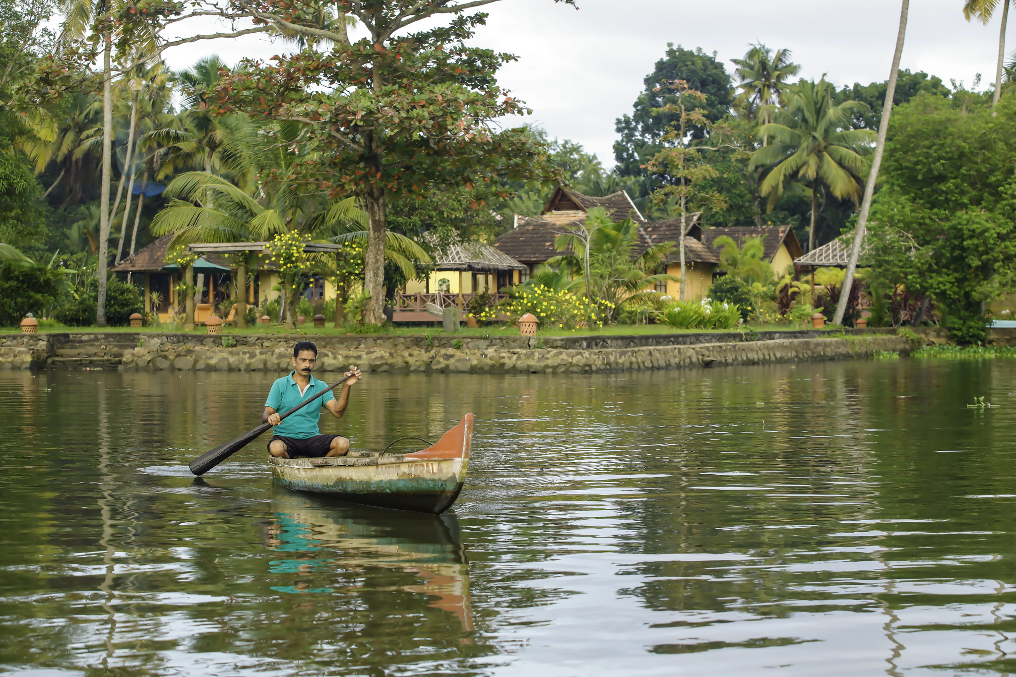 From Cochin, travel south to the backwaters near Alleppey. Your hotel sits in a particularly peaceful spot, making it an ideal base for slowing the pace. Boat rides along narrow canals give you a close-up view of backwater village life.