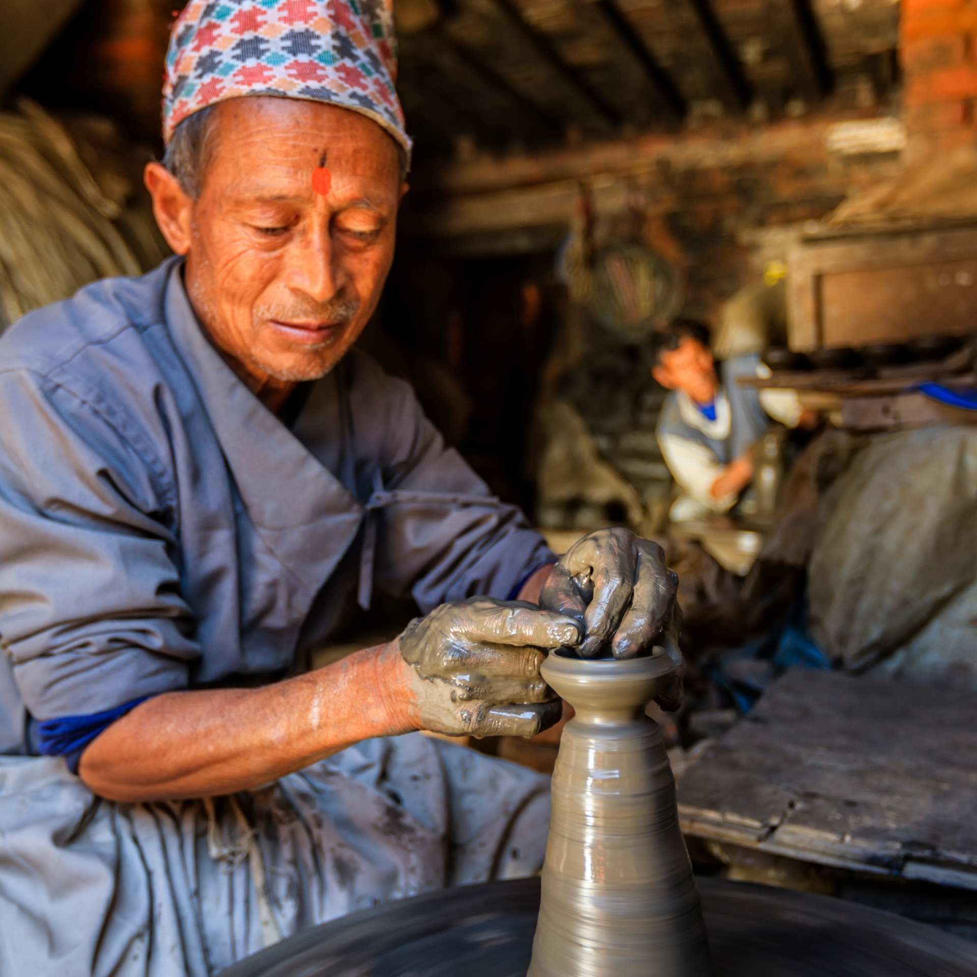 Delve into the heart of the city, alive with traditional arts, and get hands-on with the local crafts. Start by trying your hand at woodcarving with the help of skilled guides and refuel with a traditional Newari lunch. Afterwards, head to a pottery workshop, where you’ll get your hands dirty at the potter’s wheel, guided by local artisans who really know their stuff.