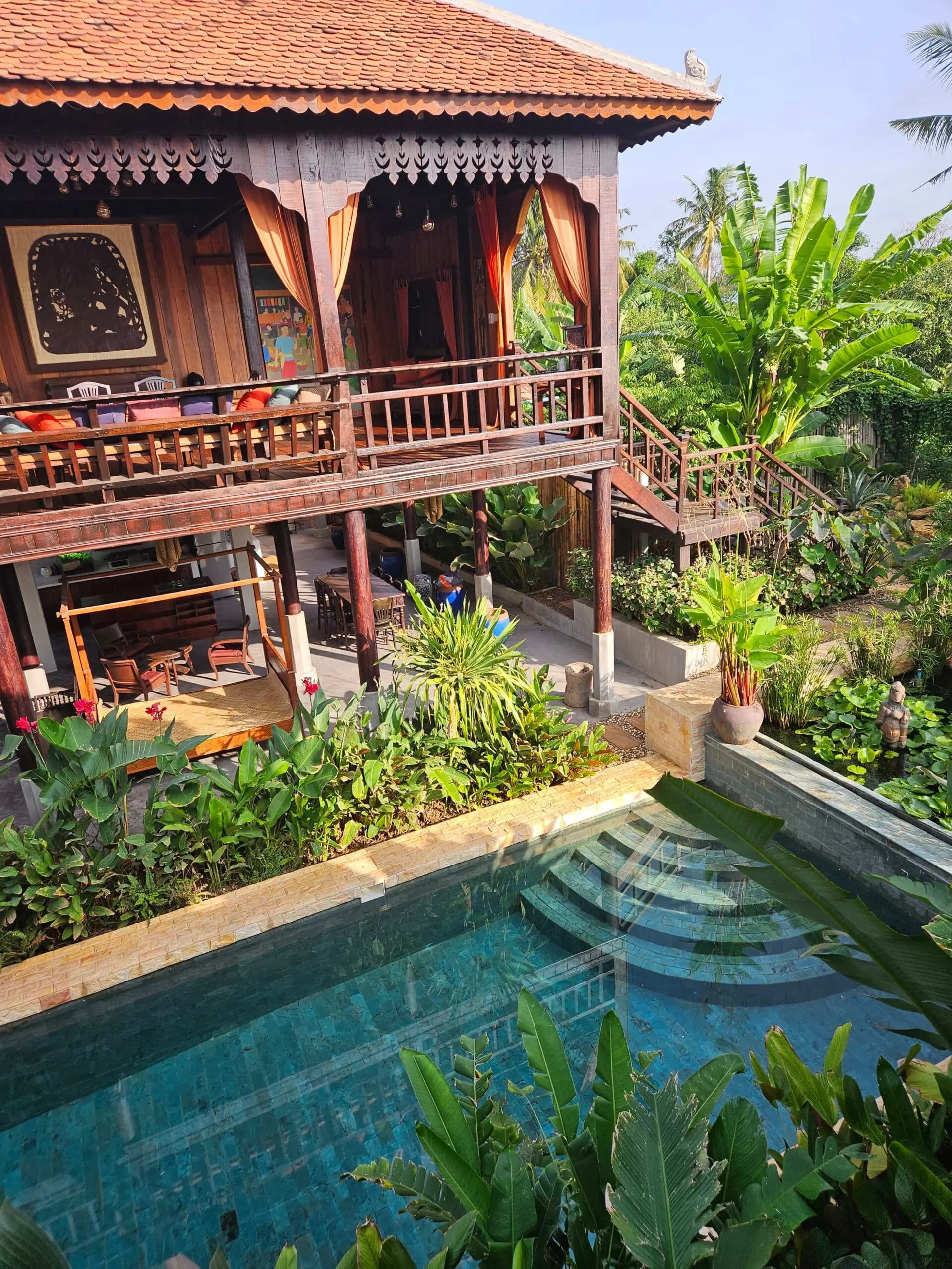 Just 40 minutes from Phnom Penh, Chef Nak’s Homestay offers exclusive stays, Khmer cooking classes, and a tranquil tropical garden setting.