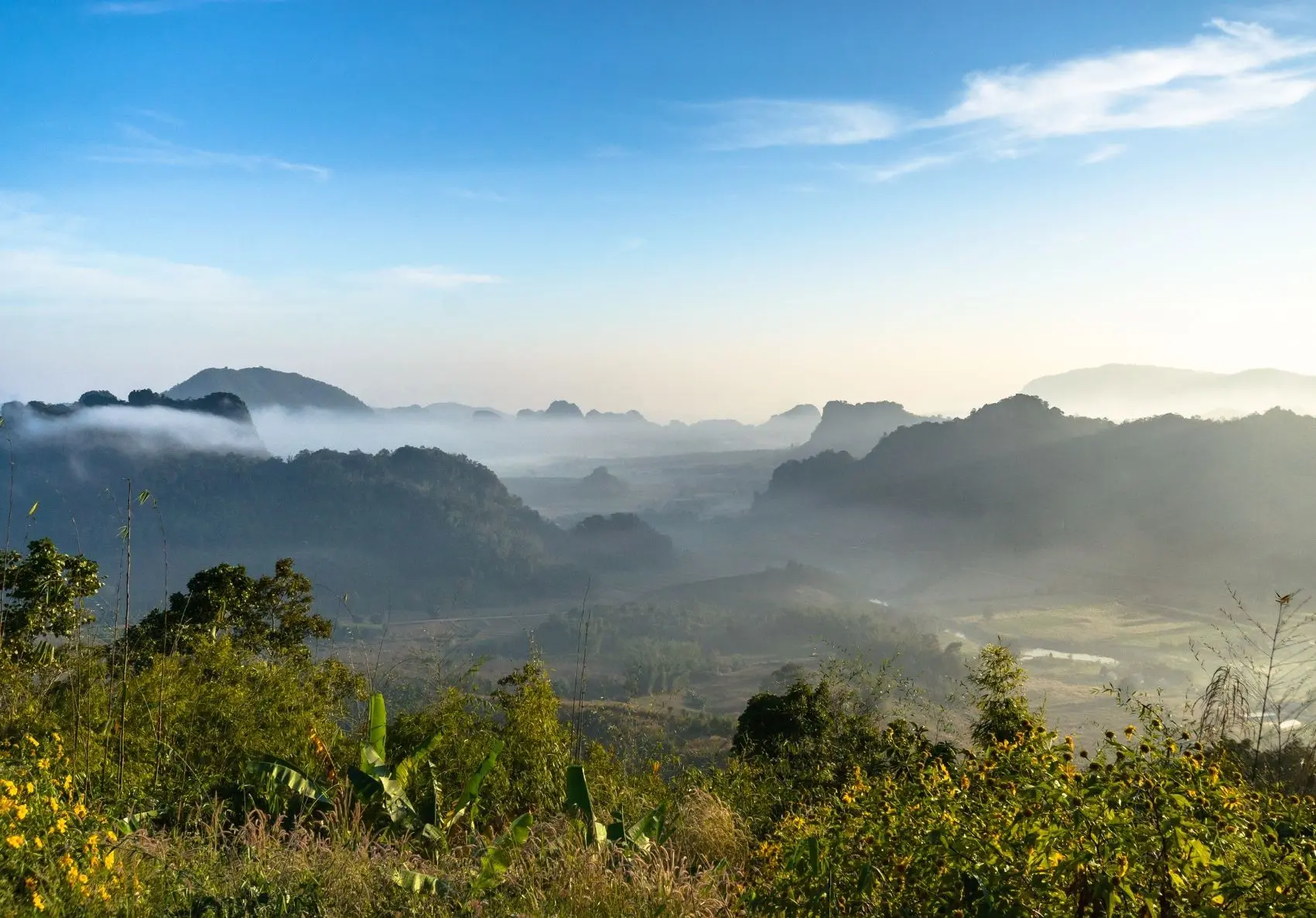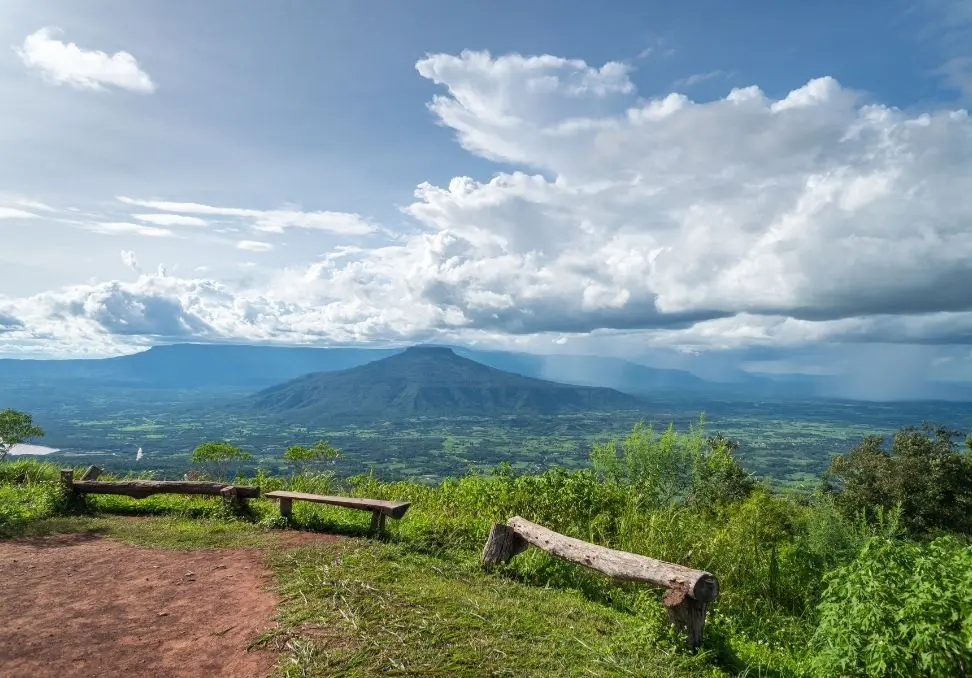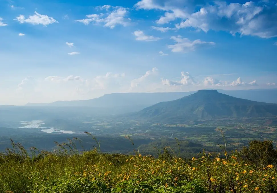 Travel north to Loei province, a rarely visited part of Thailand that holds incredible natural drama. Walk through the surreal stone formations of the Pha Ngam Rock Garden, nicknamed the ‘Thai Zhangjiajie’, then ascend to Phu Pa Poh viewpoint for a cinematic sweep of mountains and valleys.