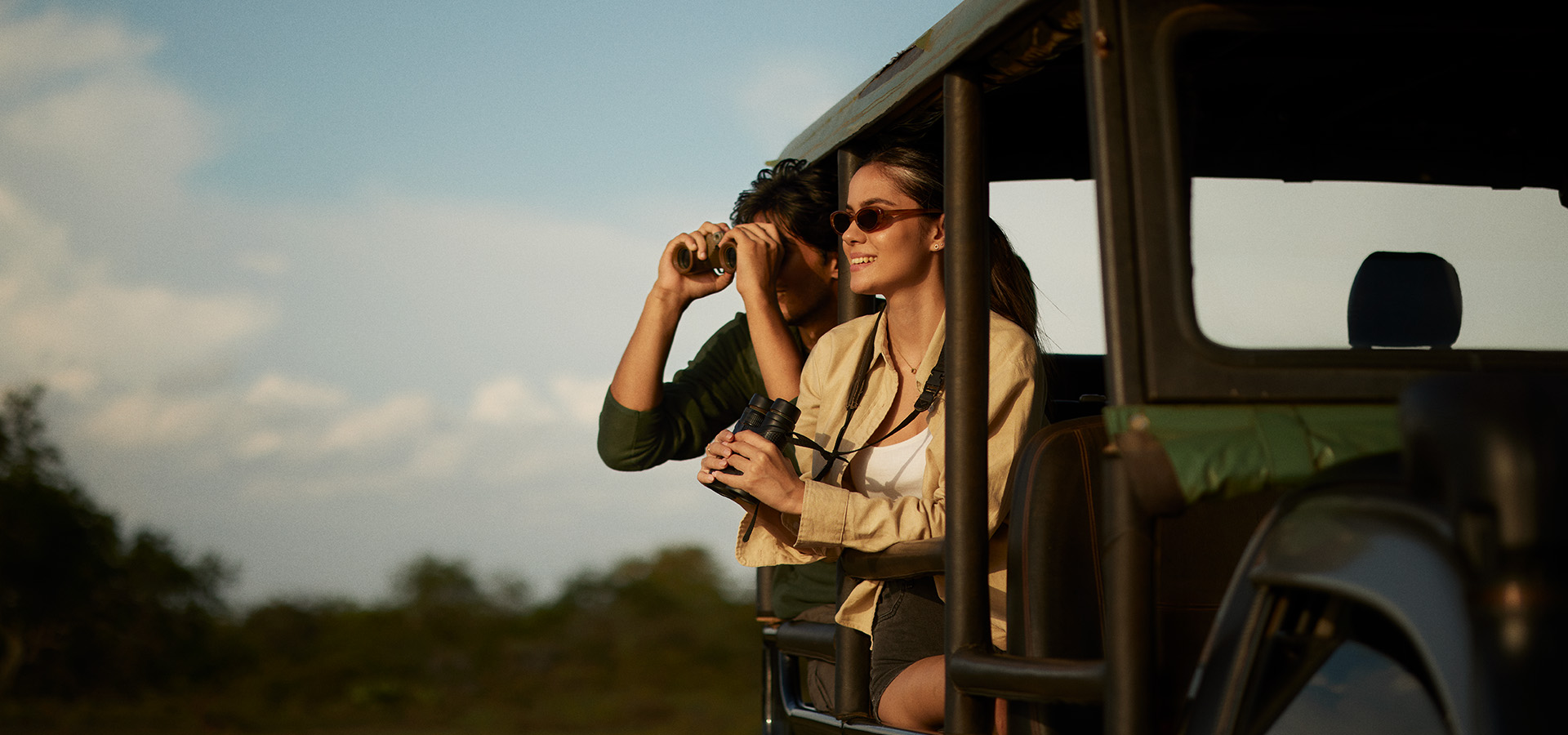 Binoculars at the ready to search for leopards and elephants in the wilds of Yala National Park