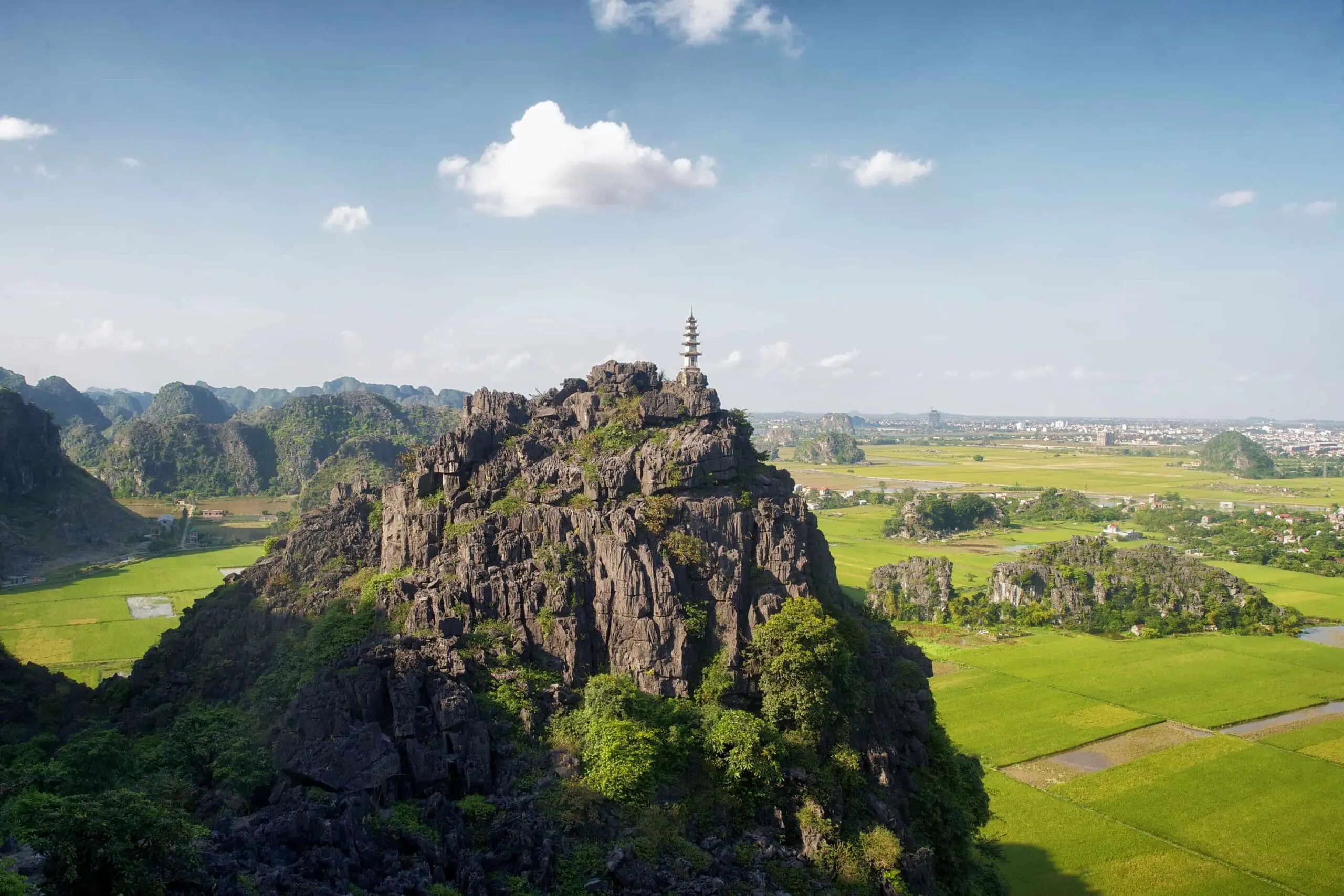 End the day with a short drive to Bai Dinh Pagoda, a Buddhist complex on the hillside. This is a great spot to watch the sunset, with limestone formations and vast rice paddy fields in the distance.
